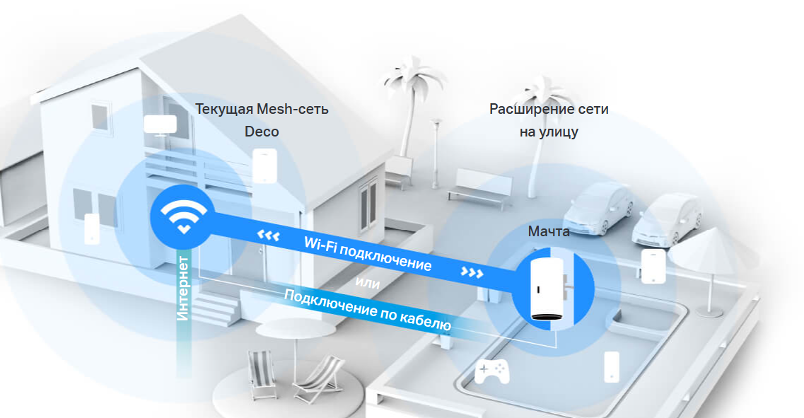 - Равномерное покрытие— сеть автоматически соединяет точки доступа, устраняя «мертвые зоны» и обеспечивая стабильный сигнал в любой части помещения.