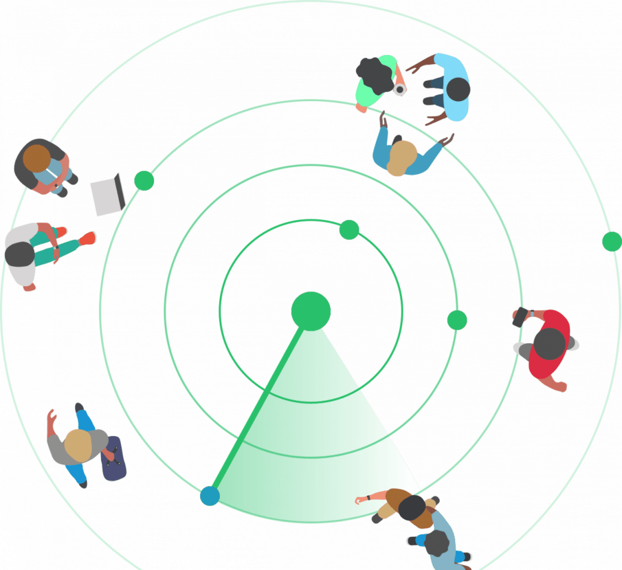 Важно понимать, что Wi-Fi-аналитика работает не с персональными устройствами, а с радиосигналами, которые уже по своей природе не уникальны. Для каждой точки доступа формируется карта интенсивности сигналов, которая позволяет определить, насколько загружена конкретная зона. Используя несколько точек, система может определить примерное местоположение устройства — но в обезличенном виде, не сопоставляя его с человеком.