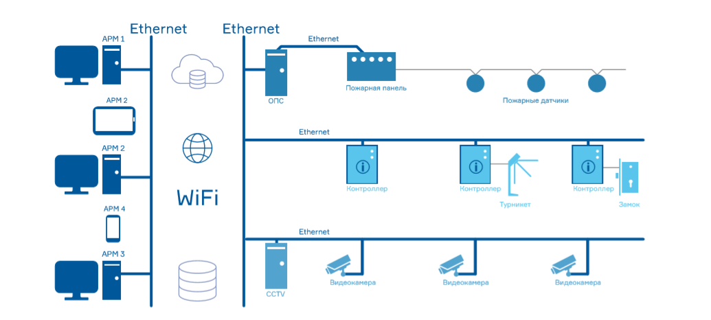 Основные компоненты архитектуры удалённого управления СКУД: