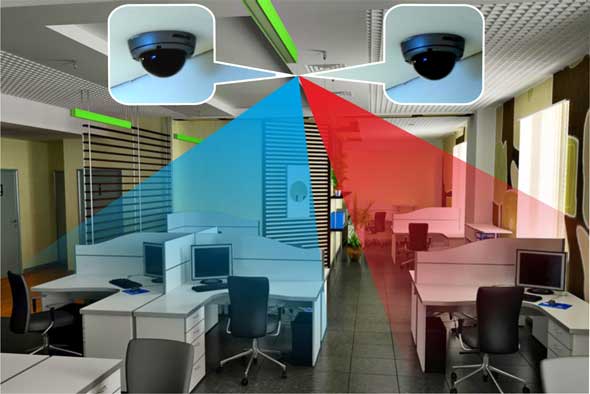 - Регулировка углов обзора:каждое устройство должно быть настроено таким образом, чтобы обеспечить максимальный обзор нужных зон без «мертвых» точек. Проверку углов необходимо проводить с учётом размещения рабочих мест, проходов и других ключевых участков.