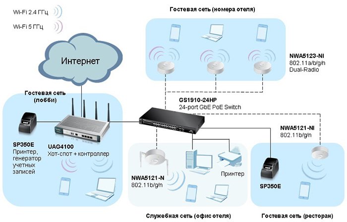 При проектировании покрытия важно учитывать плотность пользователей в различных зонах: open-space, конференц-залы, зоны ожидания, ресепшн и коридоры. В местах с высокой концентрацией гостей необходимо устанавливать дополнительные точки доступа или увеличивать мощность существующих, чтобы поддерживать стабильное соединение. Также нужно учитывать физические препятствия — стены, перегородки, металлические конструкции, которые могут ослаблять сигнал.