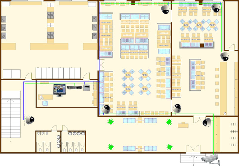 При составлении карты размещения необходимо учитывать высоту потолков, расположение колонн и мебельных перегородок. Любой предмет интерьера, перекрывающий обзор, может стать потенциальной зоной риска, поэтому позиции оборудования подбираются с учетом этих препятствий.