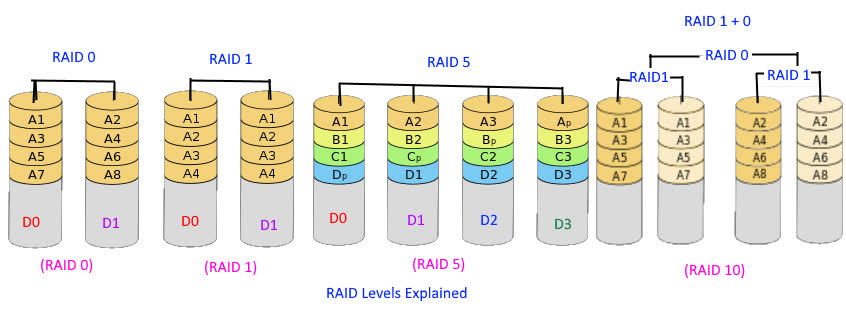 RAID (Redundant Array of Independent Disks) — это технология объединения нескольких физических дисков в единый логический массив. Основная цель RAID — повысить надежность хранения данных, производительность или и то, и другое одновременно. В зависимости от уровня RAID данные могут дублироваться, распределяться между дисками или комбинировать оба подхода.