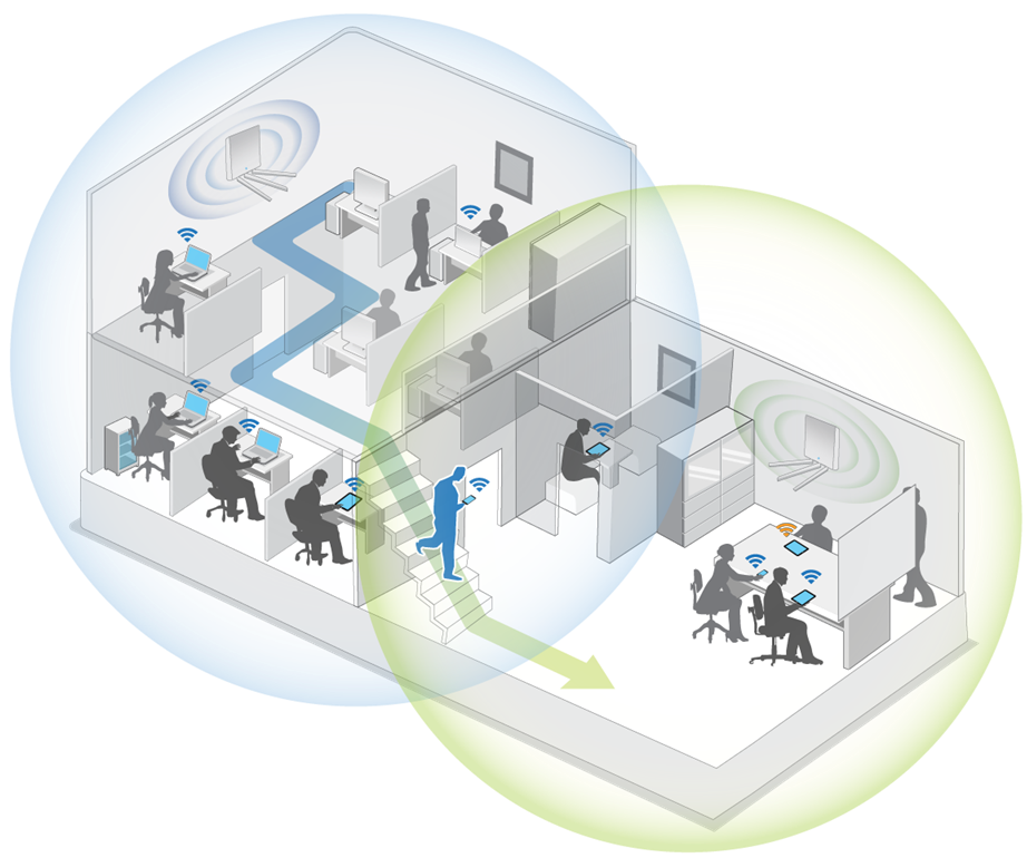 Wi-Fi 6 разработан с учётом современных требований корпоративных сетей, где одновременно работают десятки и сотни устройств — ноутбуки, смартфоны, планшеты, IP-телефоны, IoT-датчики и другие беспроводные устройства. Старые стандарты часто не справлялись с высокой плотностью подключений, что приводило к падению скорости, задержкам и перебоям в работе сервисов.