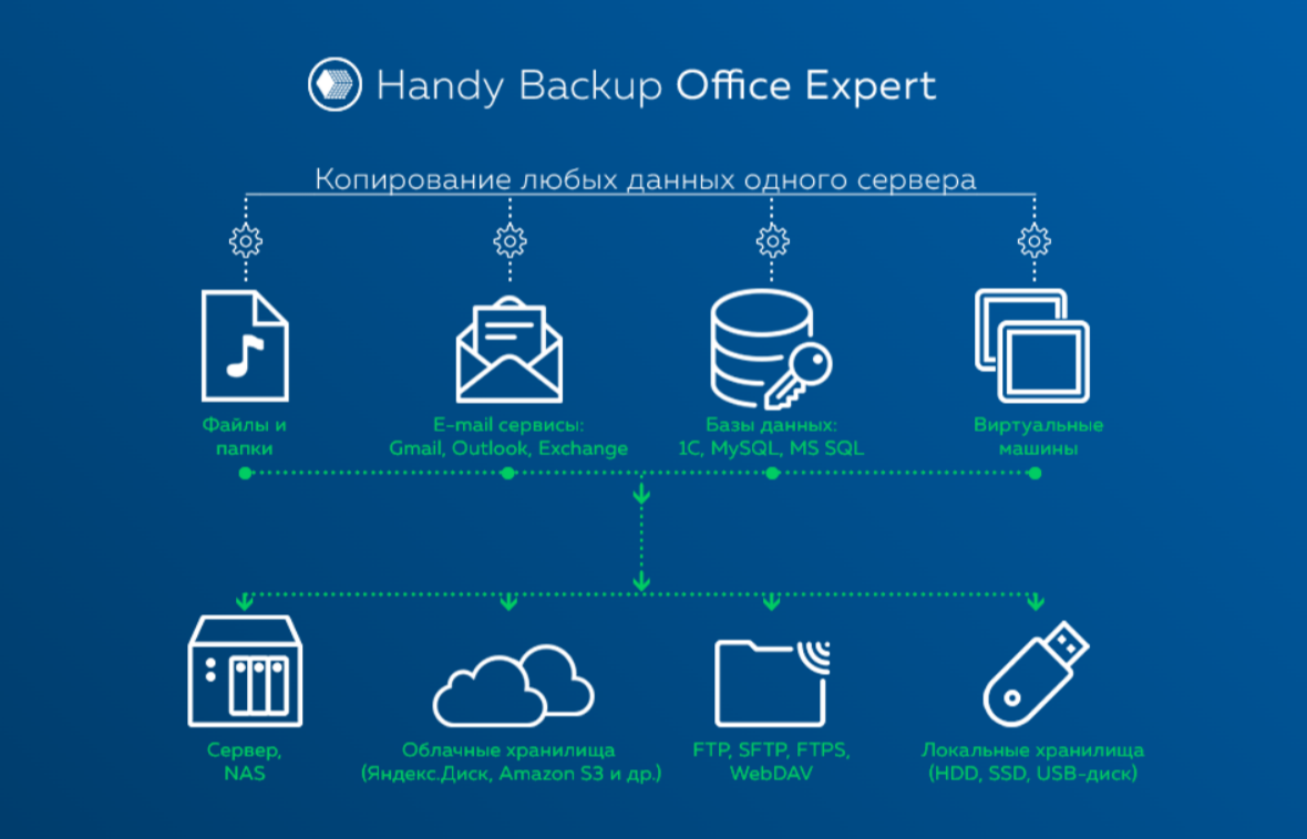 Локальное резервное копирование — это способ хранения backup-копий данных на оборудовании, расположенном внутри офиса компании или в её собственном дата-центре. Обычно для этого используются файловые серверы, NAS/SAN-хранилища или выделенные backup-серверы. Все копии находятся в пределах одной физической инфраструктуры и управляются внутренним ИТ-отделом.