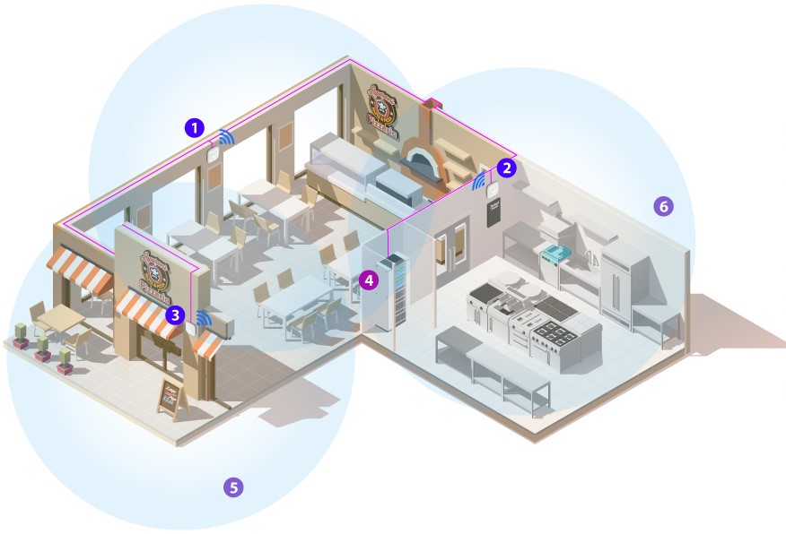 В офисах, торговых центрах, складах и производственных помещениях архитектурные особенности часто становятся основной причиной нестабильного Wi-Fi. Толстые бетонные стены, металлические конструкции или сложная геометрия помещений могут создавать «мёртвые зоны», отражения сигнала и помехи. Без учёта этих факторов даже мощные точки доступа не обеспечат равномерного покрытия.
