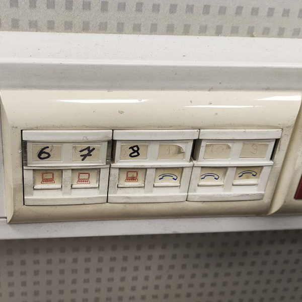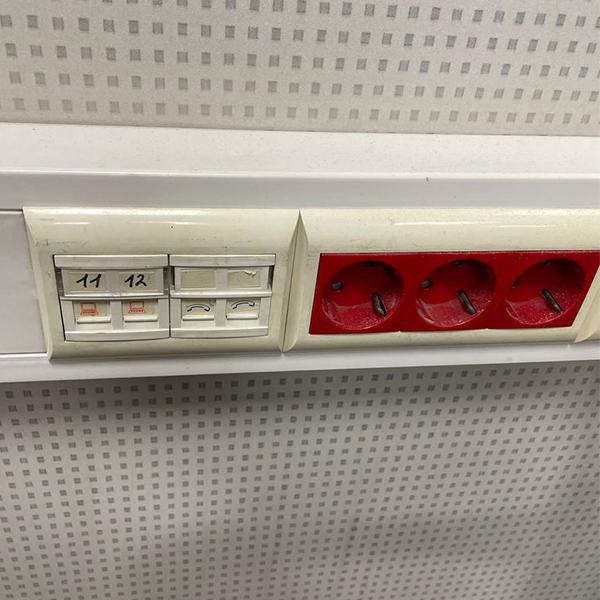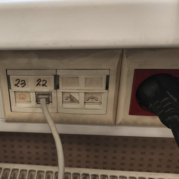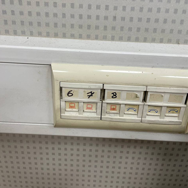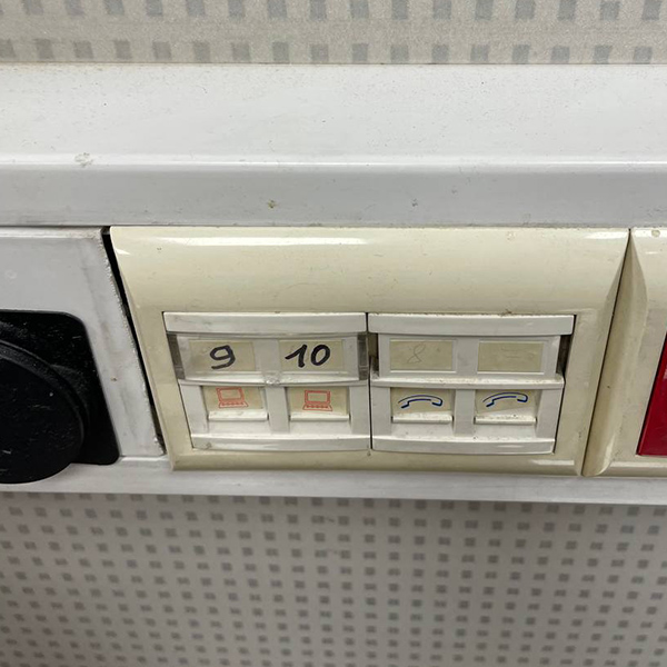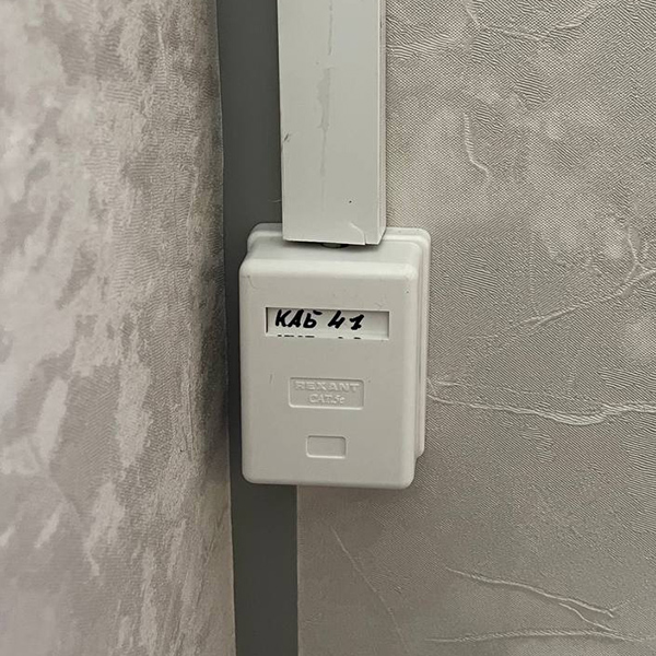 - Организация рабочих мест. Выполнен монтаж одной дополнительной розетки RJ-45 категории 5e. Остальные розетки были интегрированы в систему, так как уже существовали в интерьере.