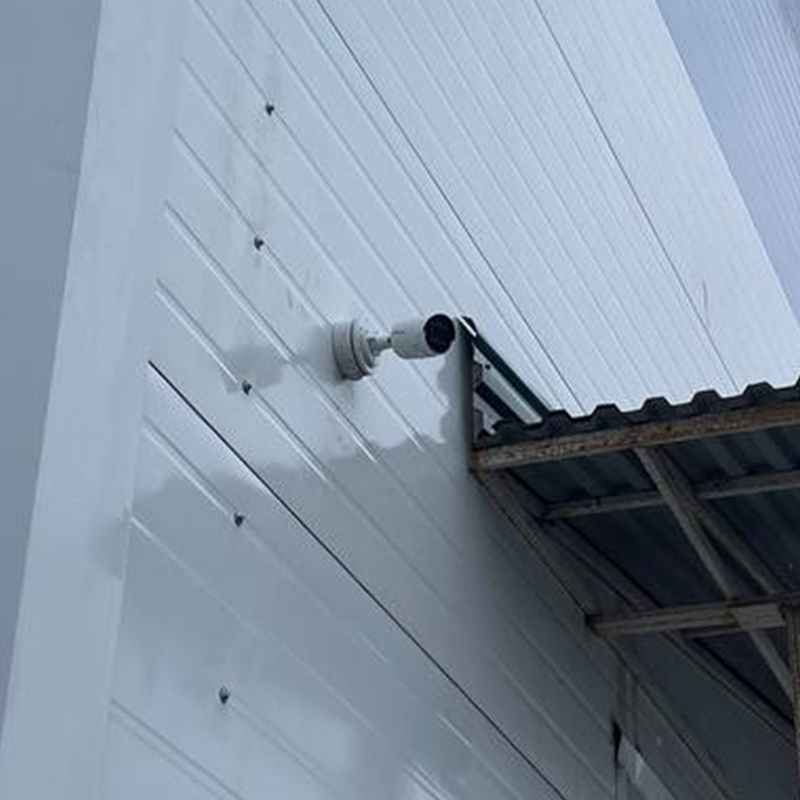 Монтажные работы выполнялись на складе компании в городе Истра. Специалисты выполнили установку пяти видеокамер с юстировкой и настройкой углов обзора, а также монтаж монтажных коробок, обеспечив эстетичное размещение оборудования без нарушения инфраструктуры.