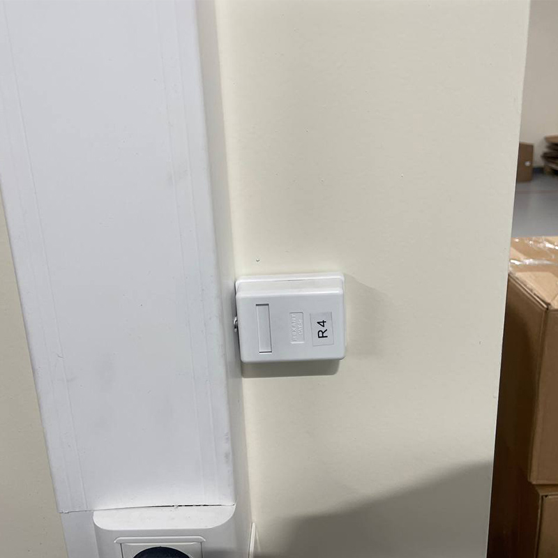 Для организации рабочих мест установлены 6 компьютерных розеток (5 одинарных и 1 двойная), что позволило подготовить необходимое количество точек подключения. Центром сети стал телекоммуникационный шкаф, в который установлен PoE-коммутатор D-Link. Дополнительно смонтирована розетка 220В и выполнено подключение оборудования.