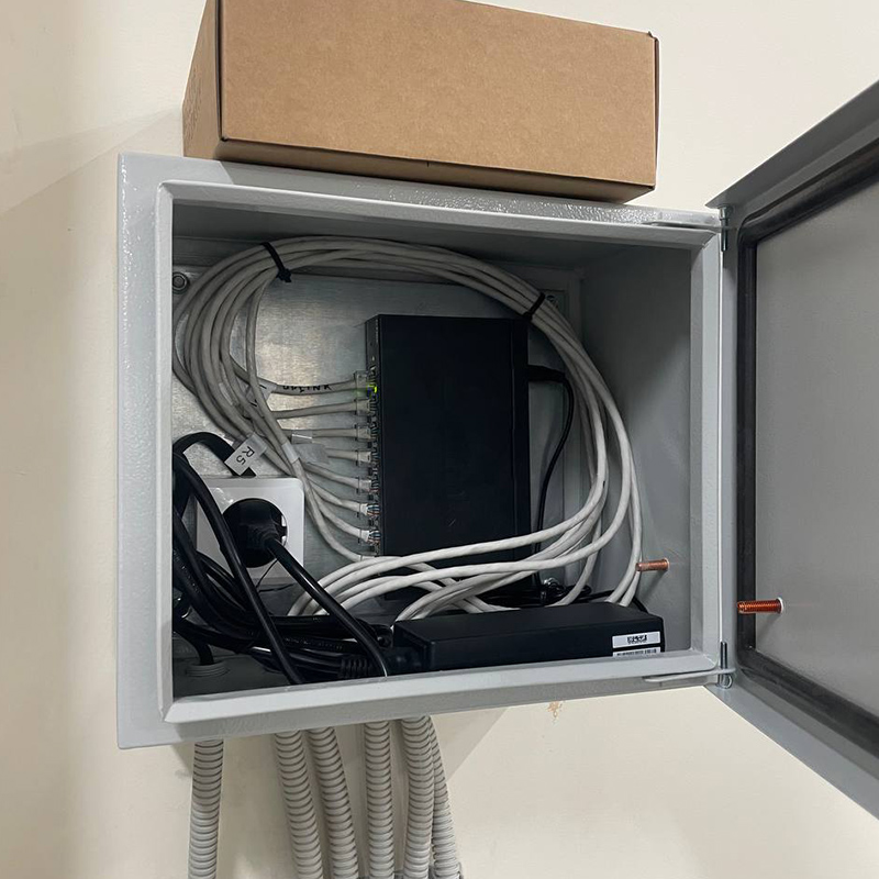 Проект включал монтаж телекоммуникационного шкафа, прокладку кабельных линий, организацию рабочих точек подключения и настройку сетевого оборудования. Все работы выполнялись в условиях действующего объекта, с учетом ограниченного пространства и необходимости монтажа на высоте.