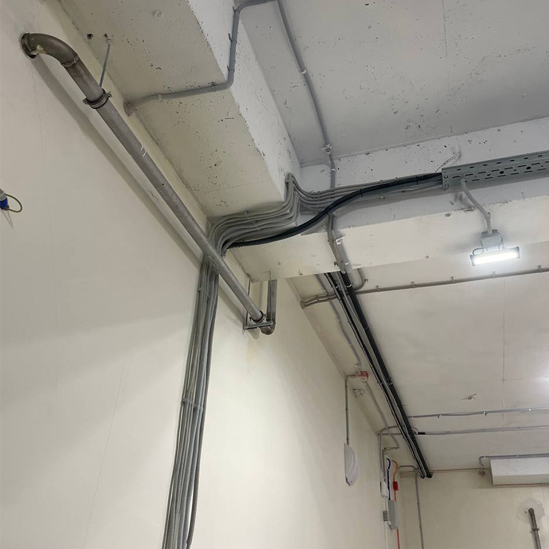 В части электромонтажа установлен отдельный автоматический выключатель, а также проложен силовой кабель для питания телекоммуникационного узла. По завершении монтажных работ выполнена настройка коммутатора доступа, что позволило сразу ввести систему в эксплуатацию. Работы проводились в сложных условиях – с монтажом на высоте более 4 метров и в ограниченном пространстве.