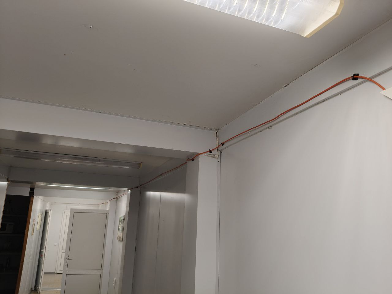 Далее была выполнена прокладка UTP кабеля категории 5E: два кабеля были протянуты к рабочим местам сотрудников, а один кабель – к офисному принтеру. Кабель проложен аккуратно, с использованием стандартных средств крепления и в соответствии с требованиями к безопасности и эстетике офиса. Всего было использовано 30 метров интернет-кабеля UTP Cat.5E, а также расходные материалы для монтажа.
