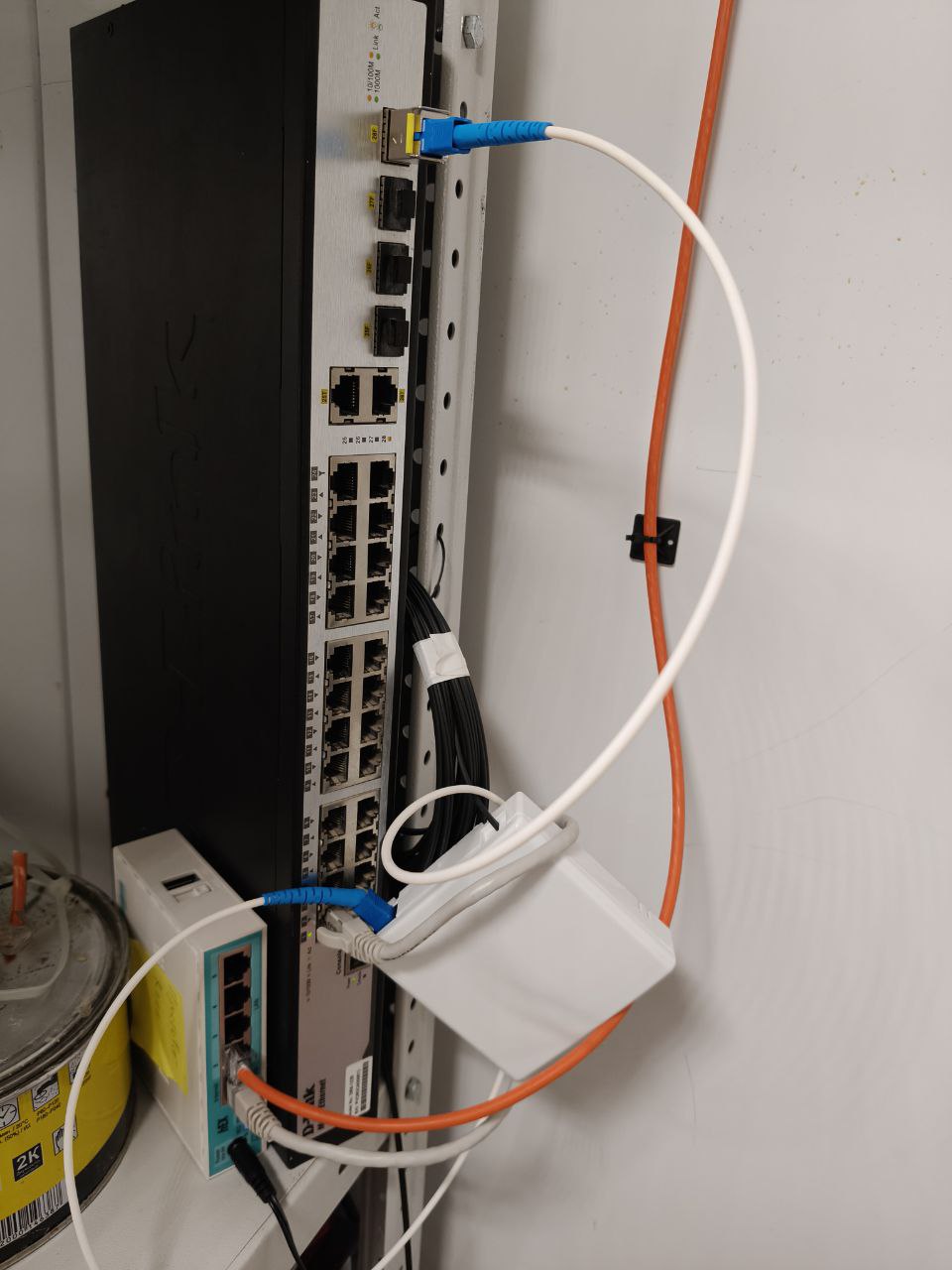 Для выполнения задачи на объекте клиента был организован выезд одного монтажника, который в рамках рабочего дня выполнил полный цикл работ по организации локальной сети в офисной части склада. Первым этапом специалист провел установку сетевого оборудования, предоставленного заказчиком: коммутатор и маршрутизатор. Это позволило создать основу для подключения всех рабочих устройств и периферии.