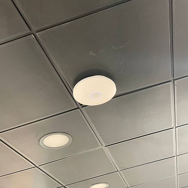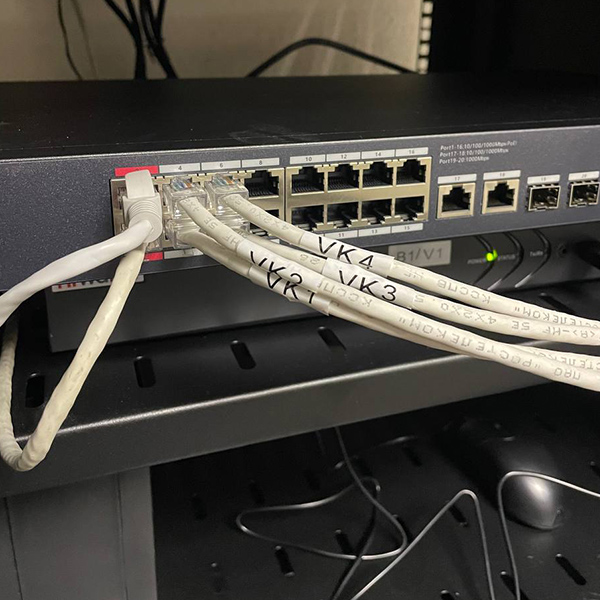 Дополнительно выполнен монтаж Wi-Fi точки доступа на потолок – для организации беспроводной сети внутри помещения. Все кабельные линии были обжаты, промаркированы и проверены профессиональным оборудованием.